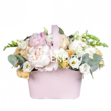 Корзина «Розовые пионы и другие цветы»