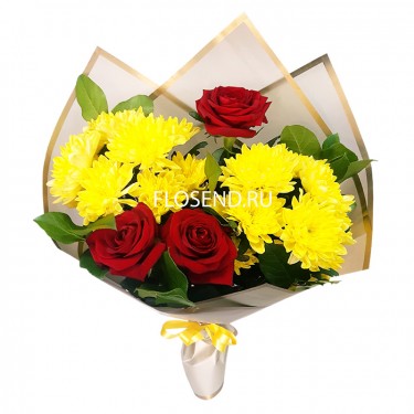 Букет «5 гербер, 5 хризантем, 5 солидаго»
